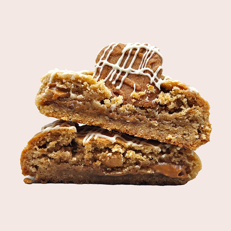 Spröda kakor med ett gyllene hjärta av krämig Biscoff. En varm och kryddig karamell smak möter choklad, en kaka att njuta av långsamt, med en kopp kaffe i handen.