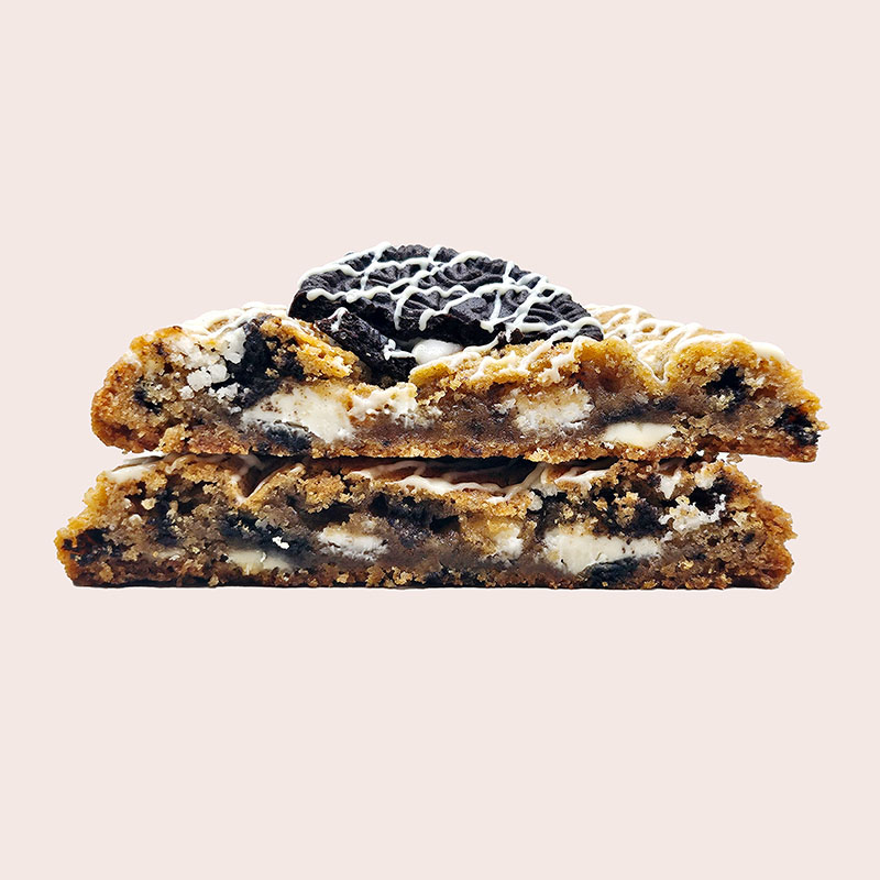Stora kakor med en krämig fyllning av Oreo och vit choklad. En klassisk smak i ny tappning, nostalgisk, len och alldeles oemotståndlig.